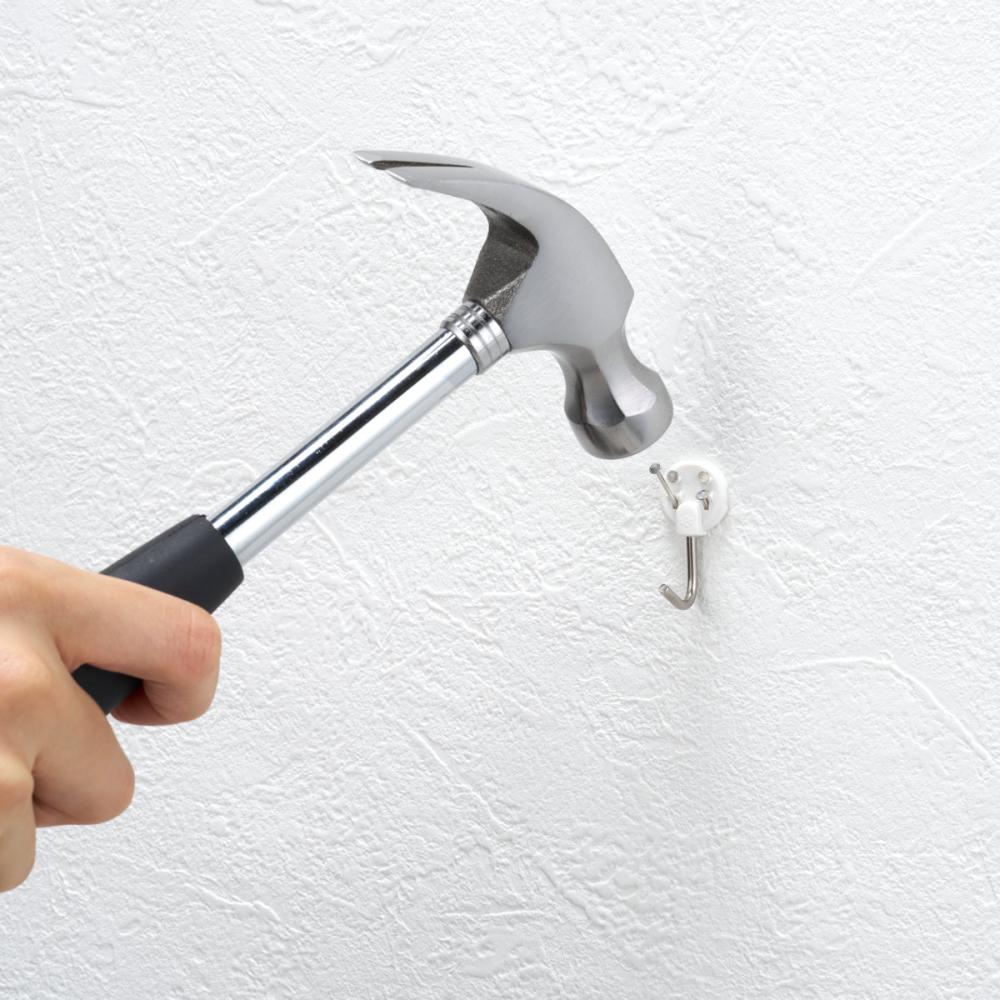 ※壁の裏にサン(横木)がある場合は、ハンマーで少しずつ打ち込んでください。