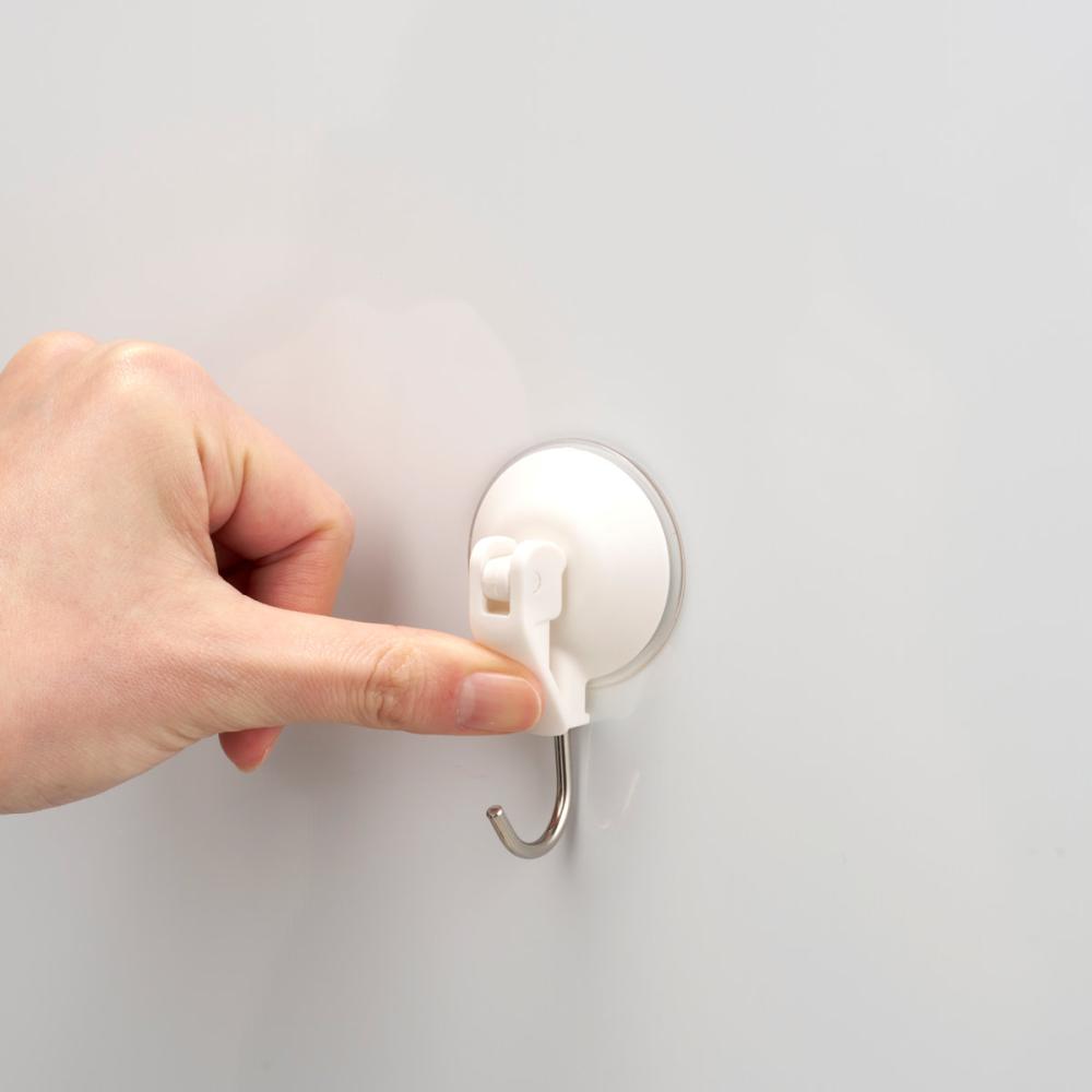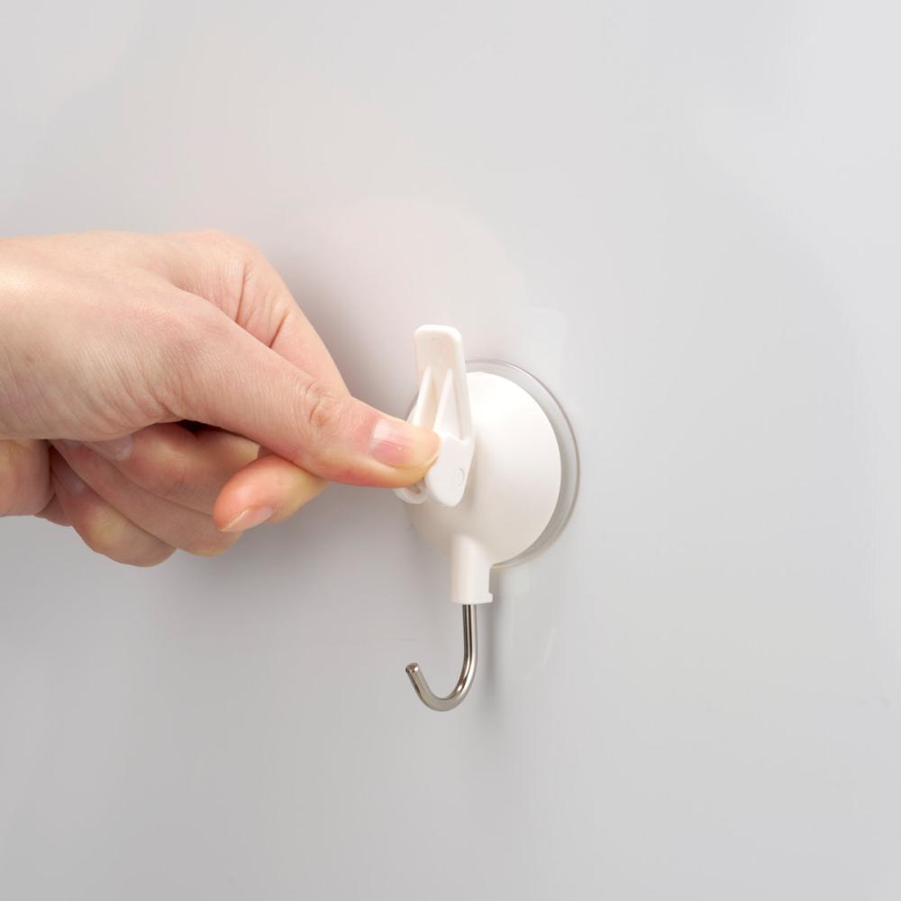 ●レバーを下げて空気を抜くので強力に吸い付く吸盤フックです。 ●レバーを上げると吸盤が外しやすくなります。
