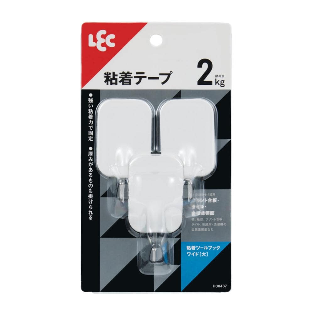 ●強い粘着力でしっかり固定します。 ●フック部分に長さがあるため、厚みがあるものも掛けられます。