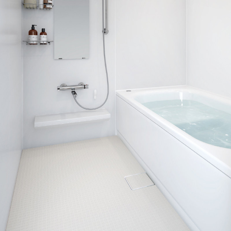 ●壁際等、シート端部はパスナシールSSで仕上げて下さい。シール代は別途料金です。 ●継目処理が必要な浴室にはテープ工法はご利用いただけません。 ●既存浴室の床に本製品を施工する場合、既存床の目地の幅が10mm以上もしく は深さが1mm以上の際に目地埋めが必要となります。 ●下地に不陸が存在していたり、必要な下地勾配(1/100~3/100)が取れていな い場合、充分な水はけ性(乾燥性)が発現しない場合があります。 ●テープ工法かつ下地の目地埋めが必要な場合、下地が磁器タイル・ユニットバス(樹脂) 下地に関わらず、目地埋めにはバスナパテEPOをご利用下さい。 <メンテナンス> ●一日を通して乾燥時間を取りにくい浴室や常時お湯あるいは水が流れ続けている箇所では、シート表面が白っぽくなる事がありますのでご注意下さい。吸水による白化の場合は、充分乾燥させると元の状態に戻ります。 ●汚れが付着すると、防滑性や水はけ性の低下の原因となります。汚れが付着した 場合は、市販のお風呂用洗剤を使用し、スポンジ等で清掃して下さい。 ●ある種のゴムによる着色汚染を招く場合があります。ご注意下さい。