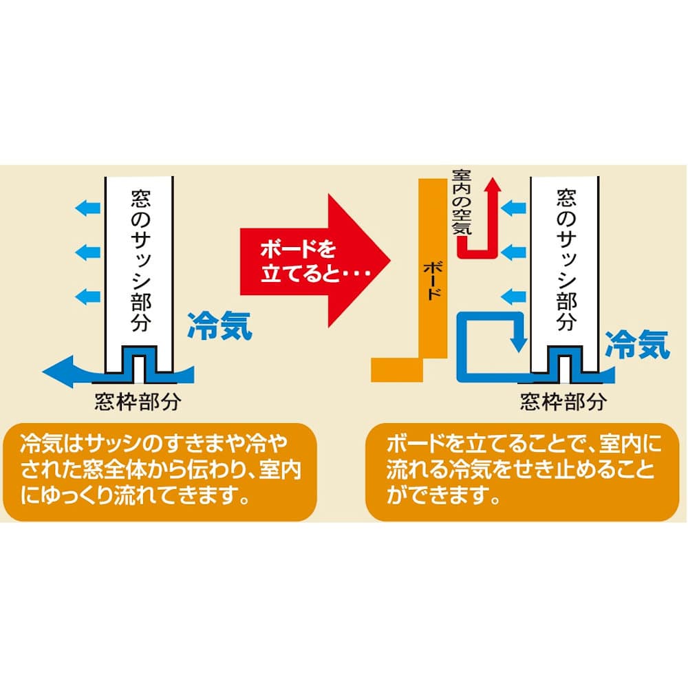 ●結露のはげしい窓で、 朝には床まで濡れてしまうような場合には、ボードと床の間に水がたまってしまう事がありますので、時々ボードをはずして拭き取ってください。