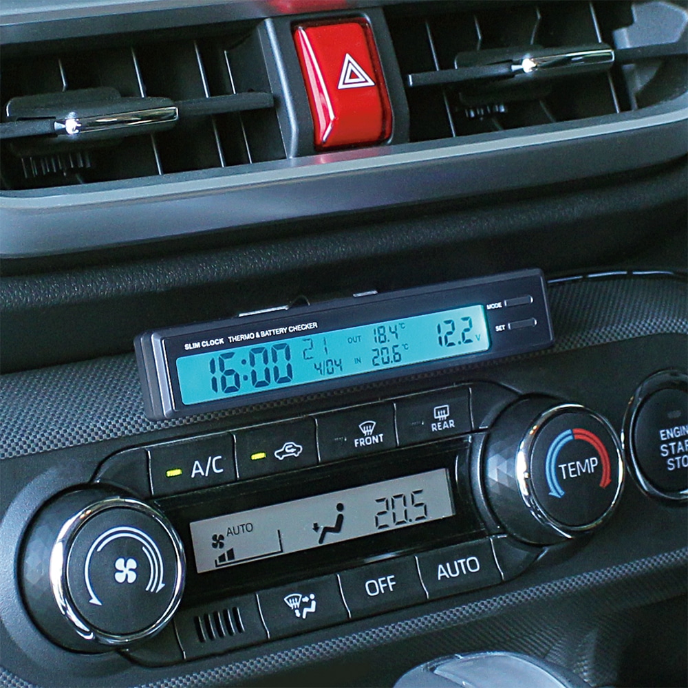 ・車両電圧が12Vを下回る場合、液晶パネルが約5秒間赤く点滅する「電圧低下お知らせ機能」付きです。