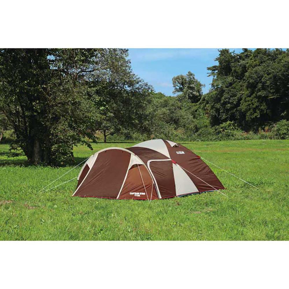 風にも強い設計。ワイドな前室に便利なサイドの出入口を装備したツールームドームテント。設営カラーポールは色分けされているので、迷わずにテント設営ができる。奥行270センチ、高さ150センチで、大人4~5名がゆったり寝れる広さを確保。便利なキャリーバッグもついてるので、収納や運搬が意外と簡単にできることもポイント。 製品サイズ(約):フライ:270×490×H155cm、インナー:270×270×H150cm 重量(約):6.6kg 材質(品質):フライ:ポリエステル185T(PU2,000mm)、インナー:ウォール=ポリエステル185T(通気性撥水加工)、フロア=ポリエステルOXF150D(PU2,000mm)、メッシュ=ポリエステルノーシームメッシュ、ポール:アルミニウム合金径9.5・径8.5mm 型番:UA-18 原産国:中国