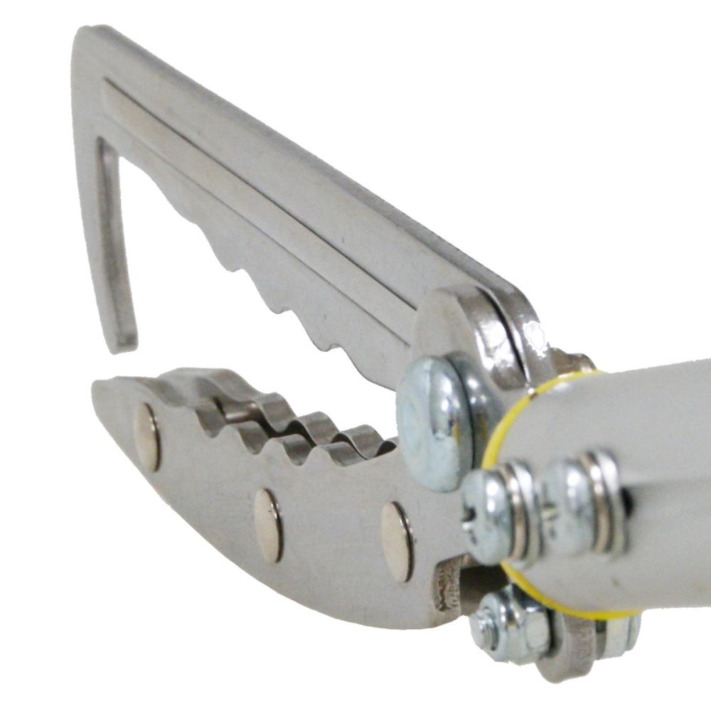 特殊3点掴み形状でヘビをしっかりつかめます。離れた場所から安全にヘビを捕獲する事ができます。軽量で持ち運びに便利です。アルミ製で軽量なので女性でも簡単に扱えます。手元握りを握るだけの操作で、先端ハサミ部分でヘビを捕獲できます。
