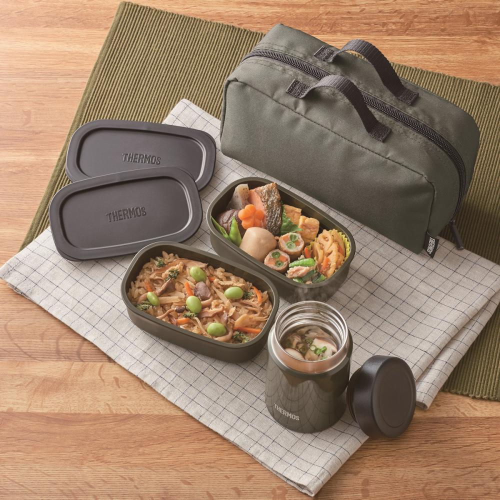 ■スープジャーと弁当箱がセット!いつものお弁当にスープジャーでプラス1品! 800:スープジャー 200ml+容器 300ml×2個 ■容器本体は電子レンジ対応 ■スープジャーフタ、容器(仕切り含)は食洗機対応 ■断熱構造の専用ポーチ(手洗いOK) ■仕切り付き(1個)