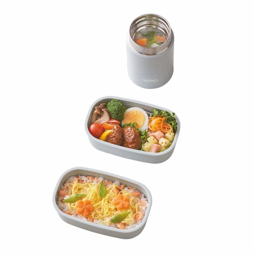 ■スープジャーと弁当箱がセット!いつものお弁当にスープジャーでプラス1品! 800:スープジャー 200ml+容器 300ml×2個 ■容器本体は電子レンジ対応 ■スープジャーフタ、容器(仕切り含)は食洗機対応 ■断熱構造の専用ポーチ(手洗いOK) ■仕切り付き(1個)
