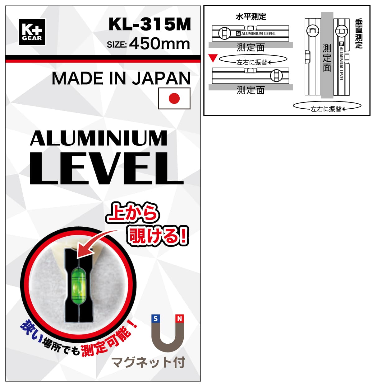 K+GEAR アルミレベル KL-315M 450mm