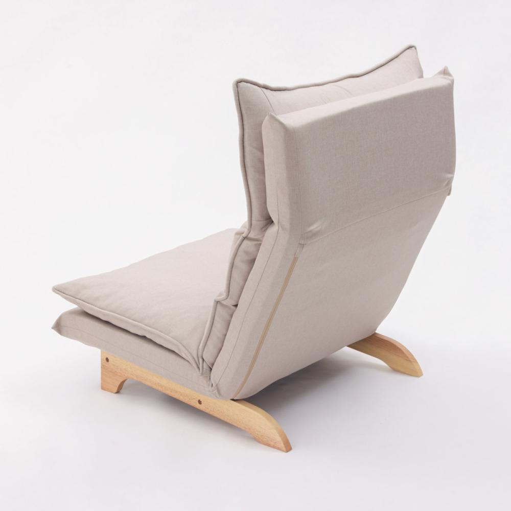 ■脚部には木材を使用。ナチュラルな色合いでお部屋と調和。また、脚部は安定感のある構造になっており、後ろ脚が椅子全体をしっかりと支えるため、安心してもたれかかることができます。