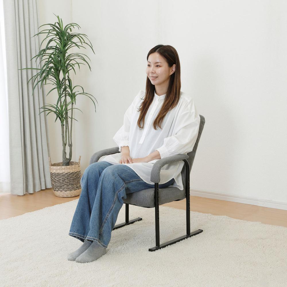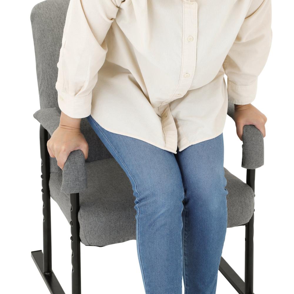 ■クッション付きで丸みのある肘掛けは、握りやすく力をかけやすいので立ち座りに便利です。