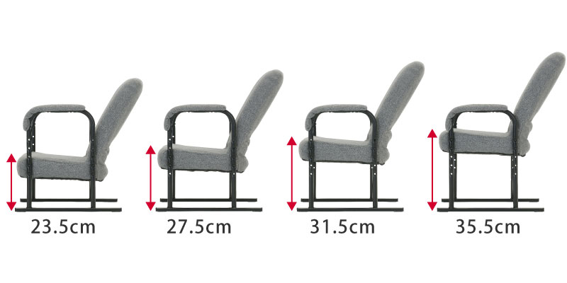 ■座面の高さを4段階で調節可能。約23.5cm/27.5cm/31.5cm/35.5cm。