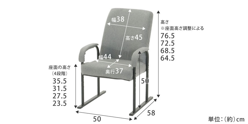 座面の高さ(4段階調節):約23.5/27.5/31.5/35.5cm