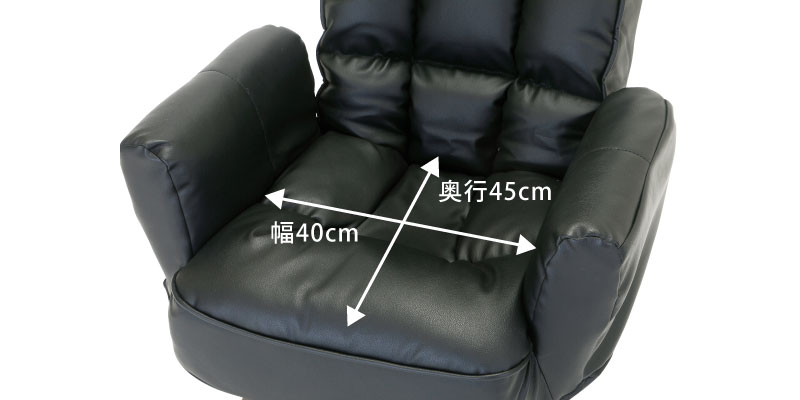 約幅40cm、奥行45cmのひろびろ座面でゆったり座れます。