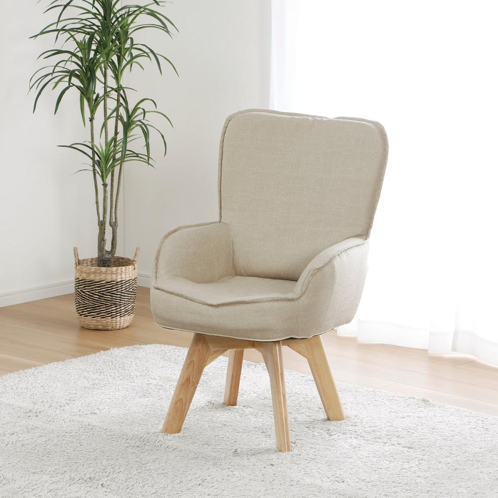 アイボリー生地にダーナチュラルの木脚を合わせました。お部屋にやさしく馴染みます。
