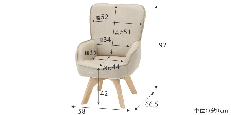 座面の高さは少し高めの42cm。立ち座りがしやすい高さです。