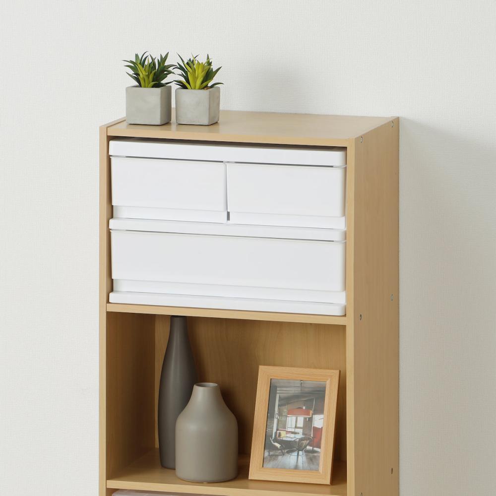 【サイズ】 外寸:約幅39×高さ26.5×奥行26cm 引き出し内寸(ハーフ):約幅15.4×高さ9×奥行22.3cm 引き出し内寸(フル):約幅33.7×高さ9×奥行22.3cm 【耐荷重】 天板:1kg、ハーフ引き出し:0.5kg、フル引き出し:1kg ※積み重ね時は総重量15kgまで 【材質】 ポリプロピレン 【原産国】 日本