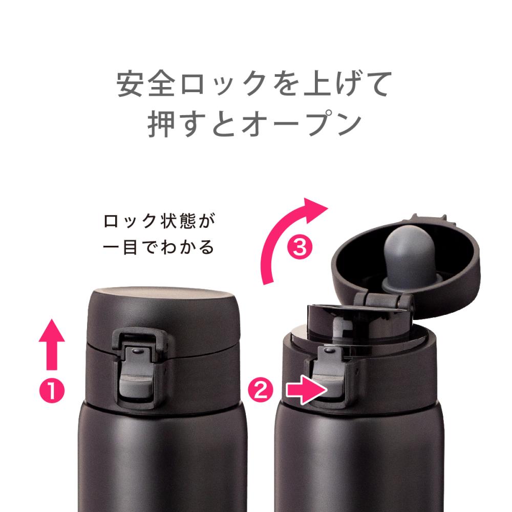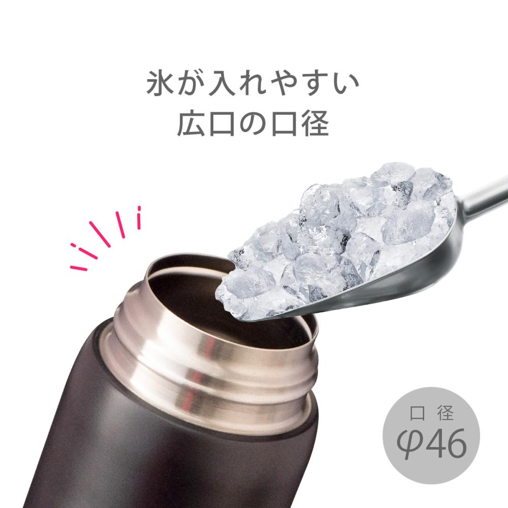■本体重量わずか約240g 軽いので、持ち運びもラクラク。 ■ワンタッチでオープン 片手で開閉できるワンタッチキャップ。安全ロック付きなので持ち運ぶ時も安心。 ■洗いやすい パッキンを取り外せるので、細部まで洗えて衛生的。 ■氷が入れやすい ご家庭の冷蔵庫の氷がそのまま入る口径約46mm。 ■真空断熱二重構造 外気の影響を受けないので、保温・保冷効力が長持ち。 内びん銅メッキ加工でさらに高い保温効力を実現。 結露せず、持ち手も熱くなりません。