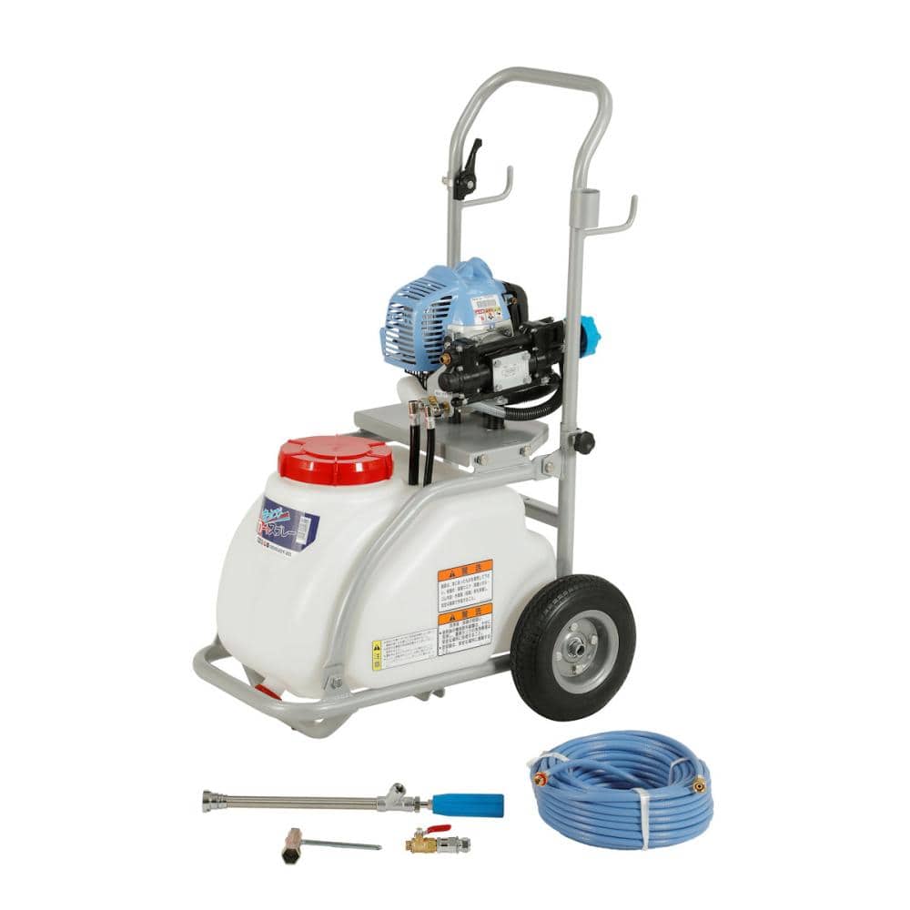 パワフルツインピストンポンプ搭載 吸水量7.1L/分 圧力0.8、1.6、2.5MPa(3段切替式) ガーデン噴口付(手元にて直射⇔広角切替) 薬剤タンク30L 噴霧ホース6mm×20m付