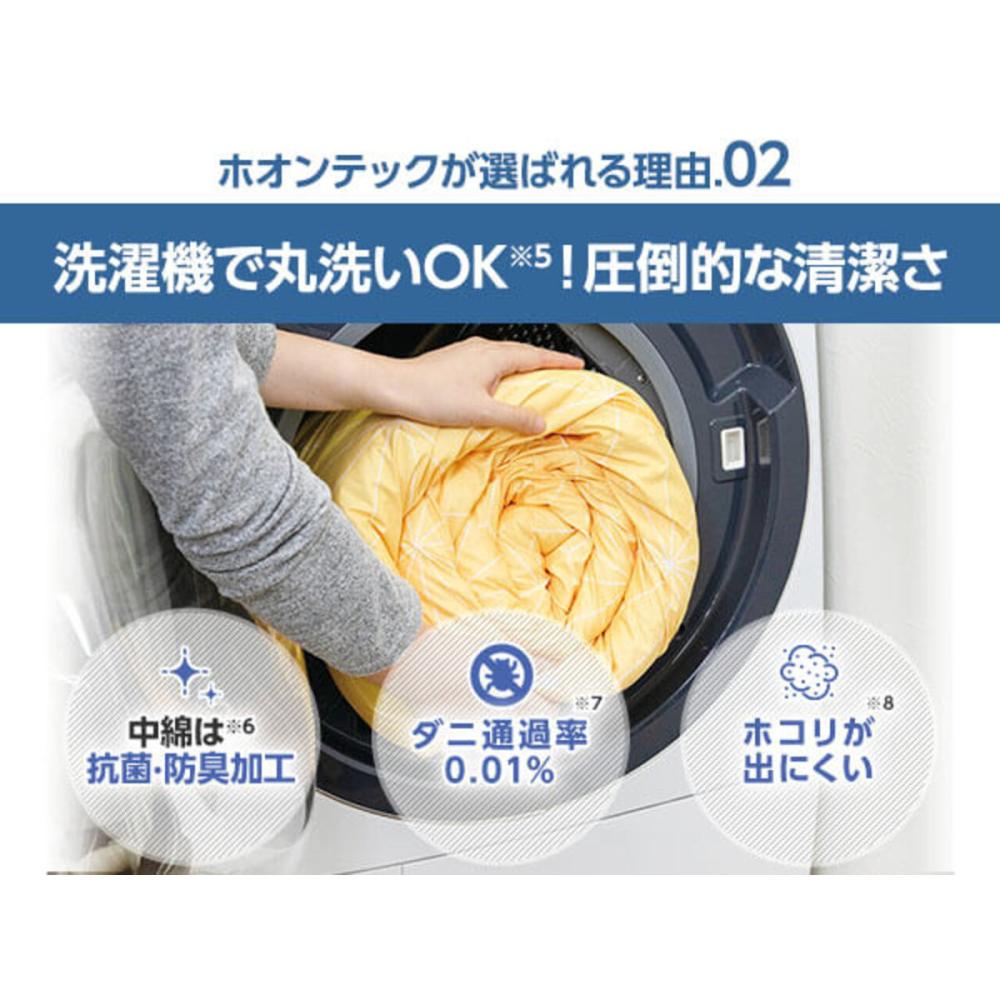 洗濯機で丸洗いOK! ホコリがでにくく、ダニ通過率は0.01%と衛生的です。「ハイパー保温ボール」は抗菌・防臭加工。
