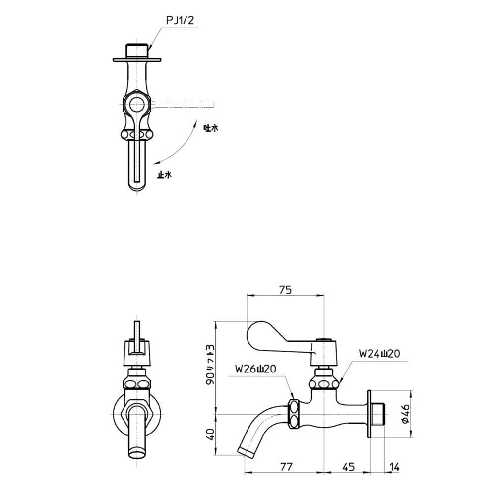 ●呼び13水栓 取付部ネジ:PJ1/2