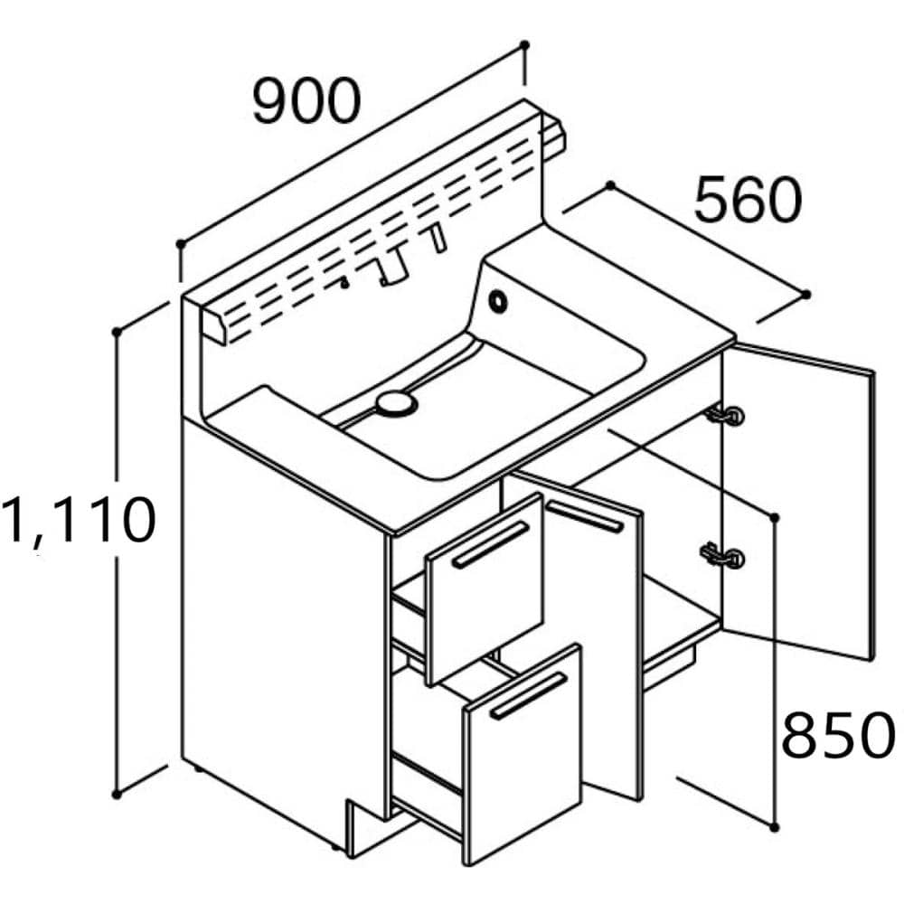 ひろびろとした洗面器は使い勝手が良く、お手入れもカンタン。大容量収納でストック品はもちろん、大きなドライヤーもすっきりしまえる洗面化粧台です。 |