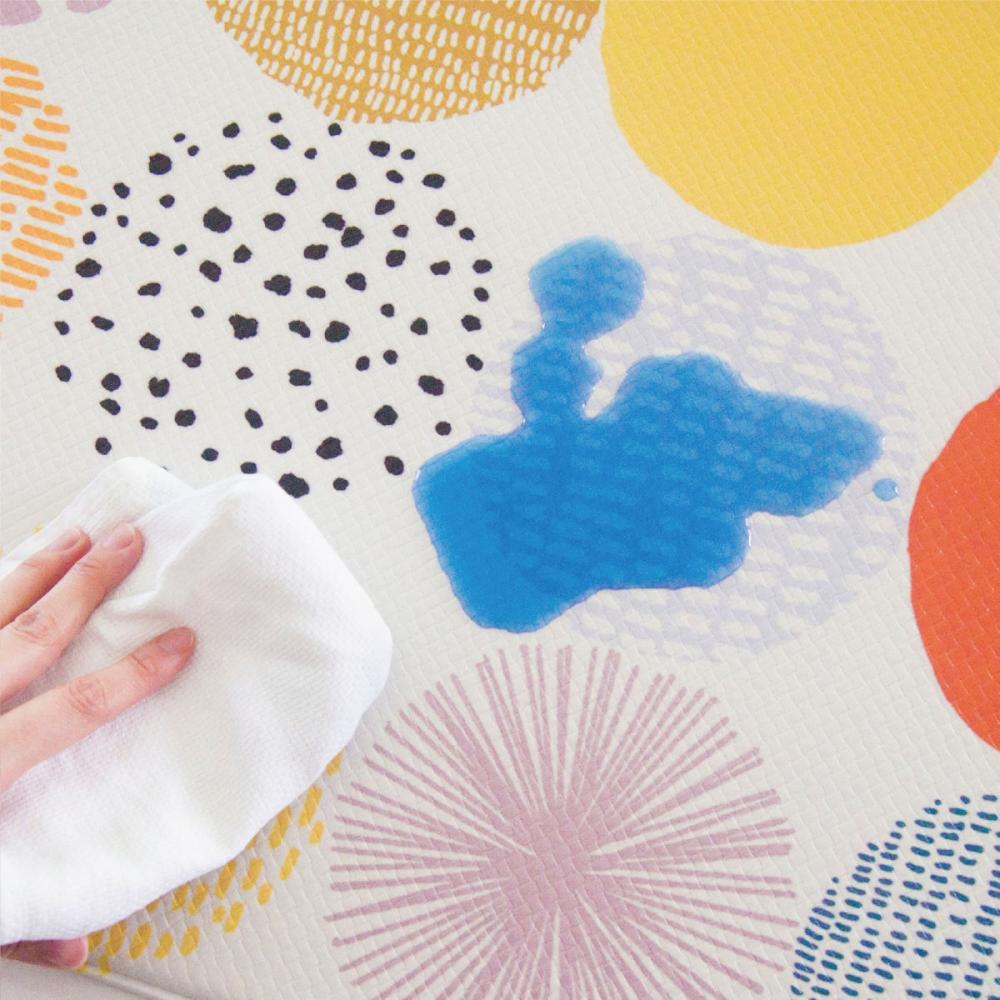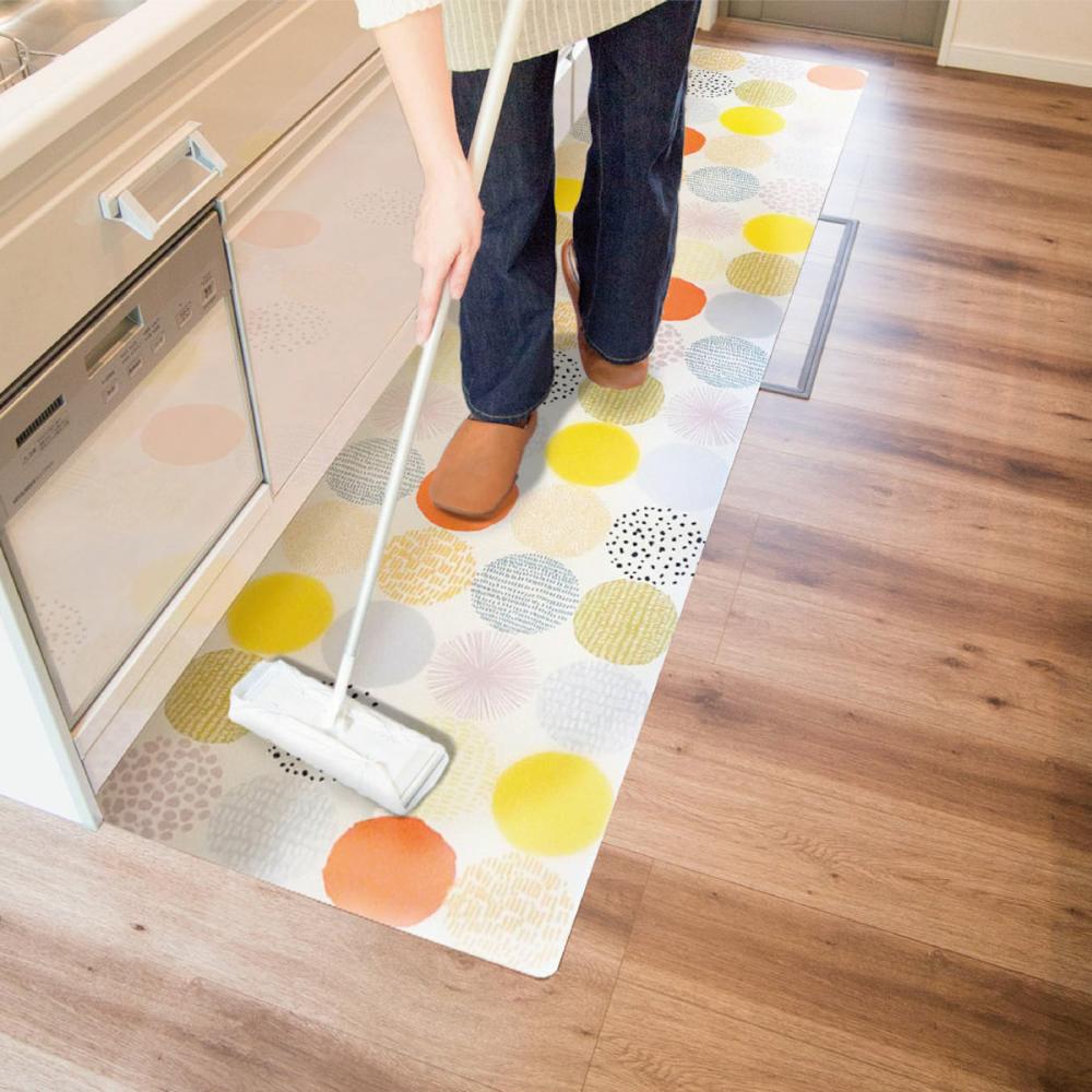 ・長時間同じ場所で使用したり、ホットカーペットや床暖房など暖房器具の上での使用は、床面がべたついたり変色することがあります。目安として1週間ごとに使用場所を移動したり、床面を拭いてご使用ください。