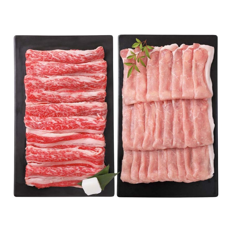 国産の牛肉、豚肉それぞれをすき焼き用にスライスしお届けします。