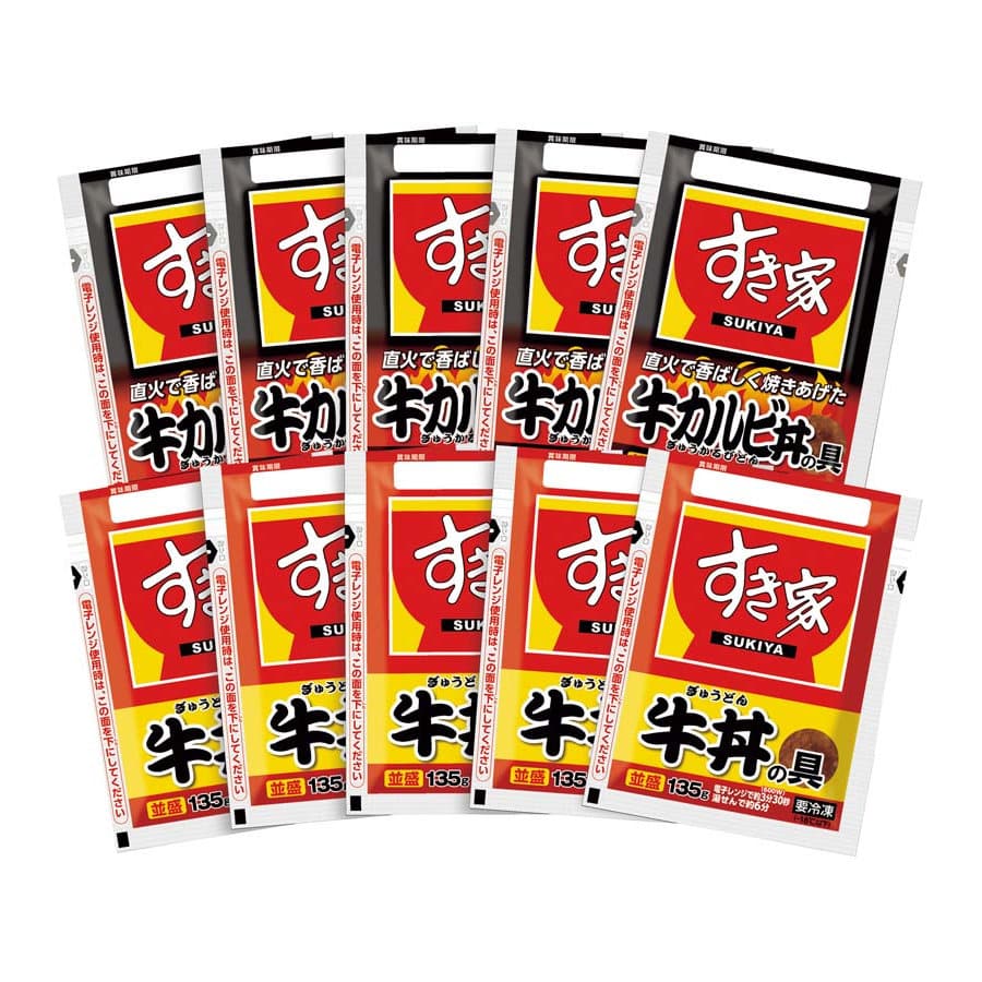 【セット内容】すき家牛丼の具135g×5、牛カルビ丼の具120g×5