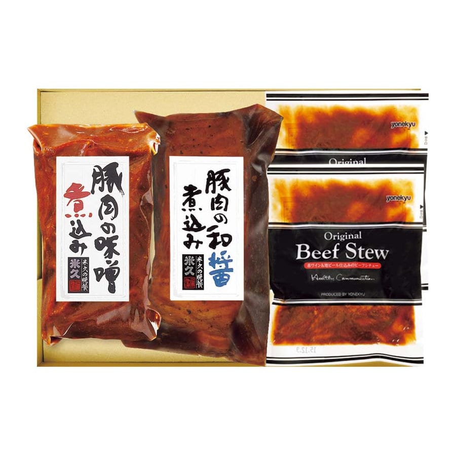 【セット内容】豚肉の煮込み(味噌、和醤)各210g、ビーフシチュー170g×2