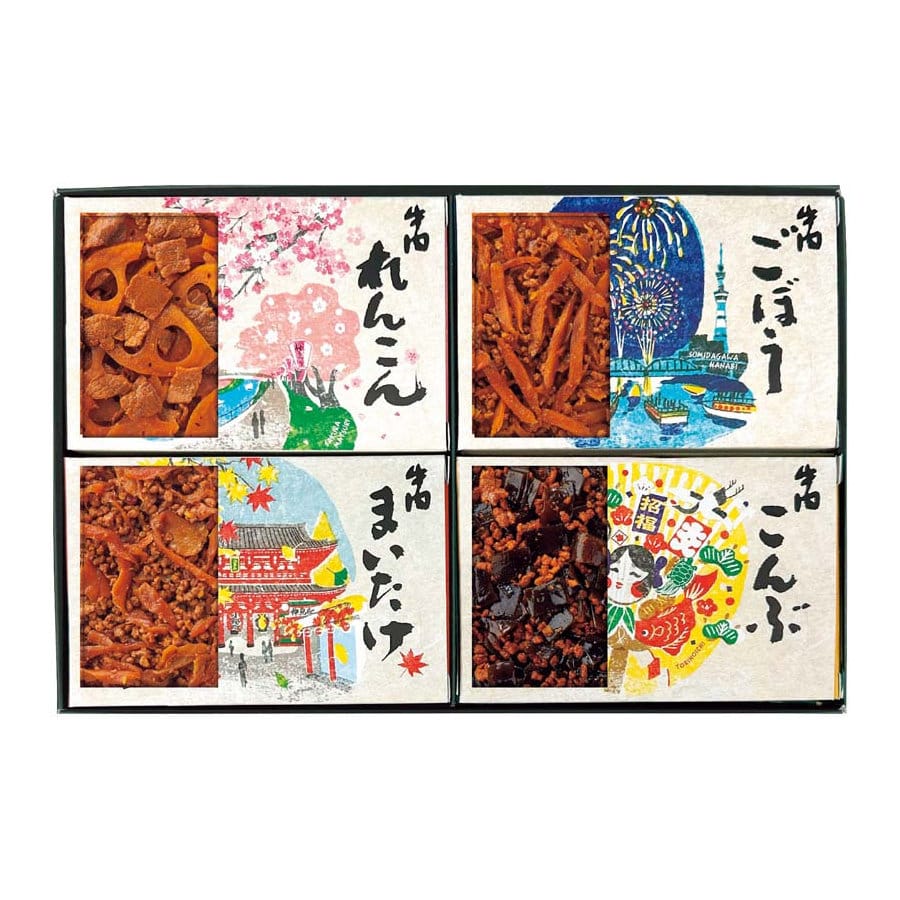 【セット内容】牛肉ごぼう、牛肉れんこん、牛肉まいたけ、牛肉こんぶ各55g