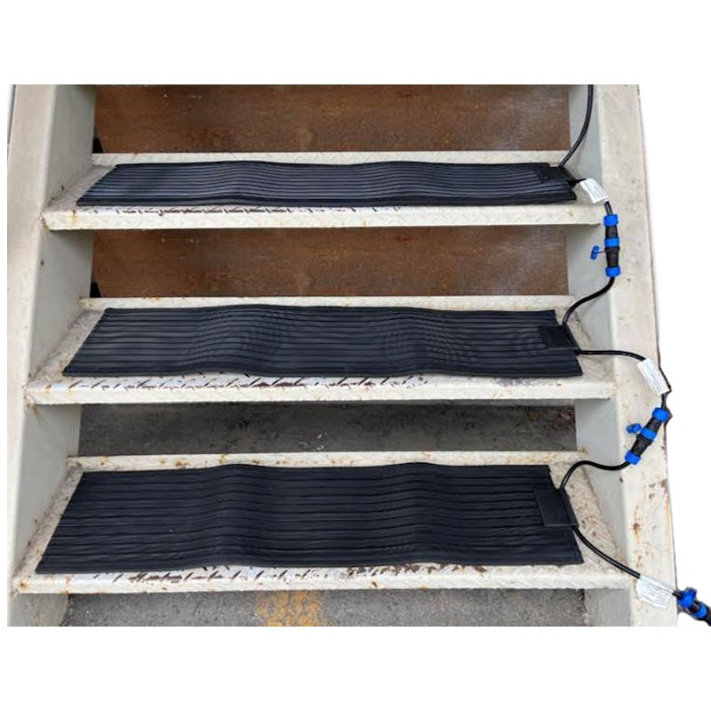 "●3枚組 ●別売の増設ヒーター(FH-72WP)もあり、各階段への設置もできます。 ●上昇温度:45℃~50℃ ●電源コード:1.5m付 ●防水等級:IP67 ●消費電力:216W"