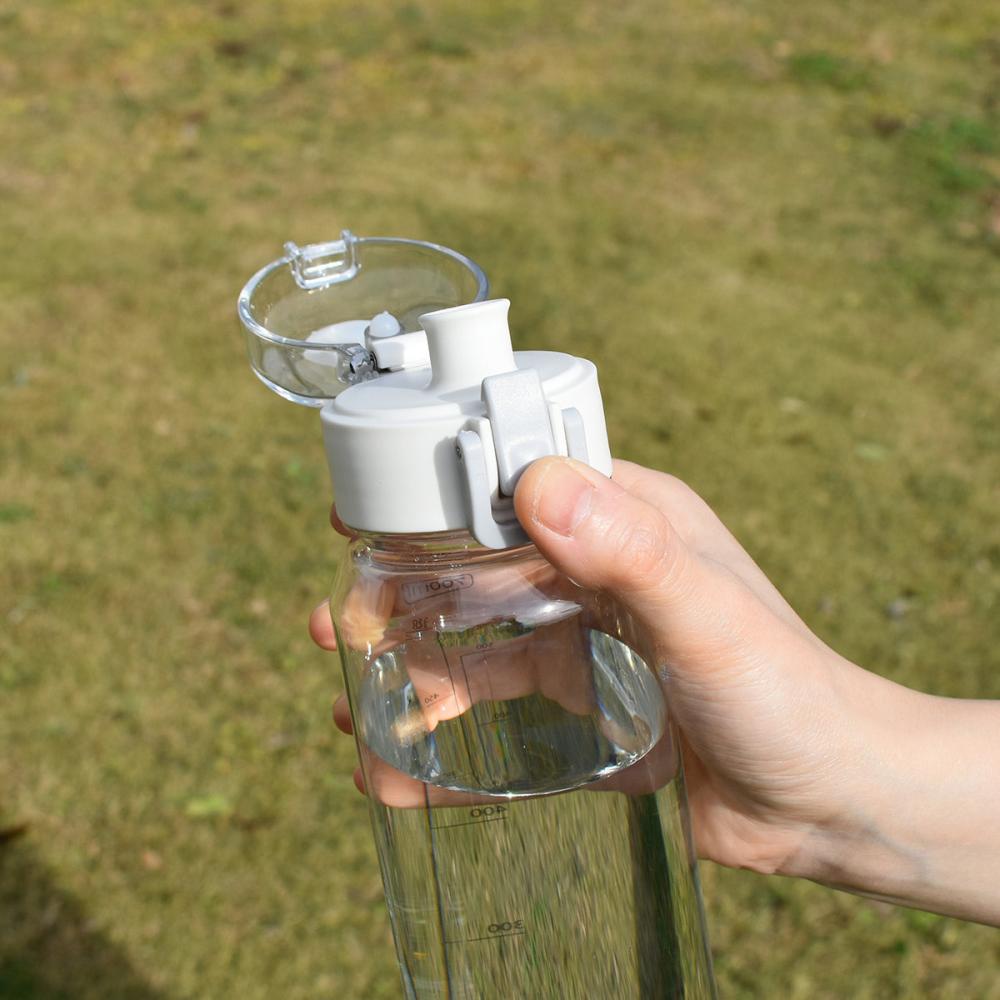 ●ワンタッチオープンで飲みやすい ●便利なメモリ、お好きな持ち手が付けられるストラップ穴付き