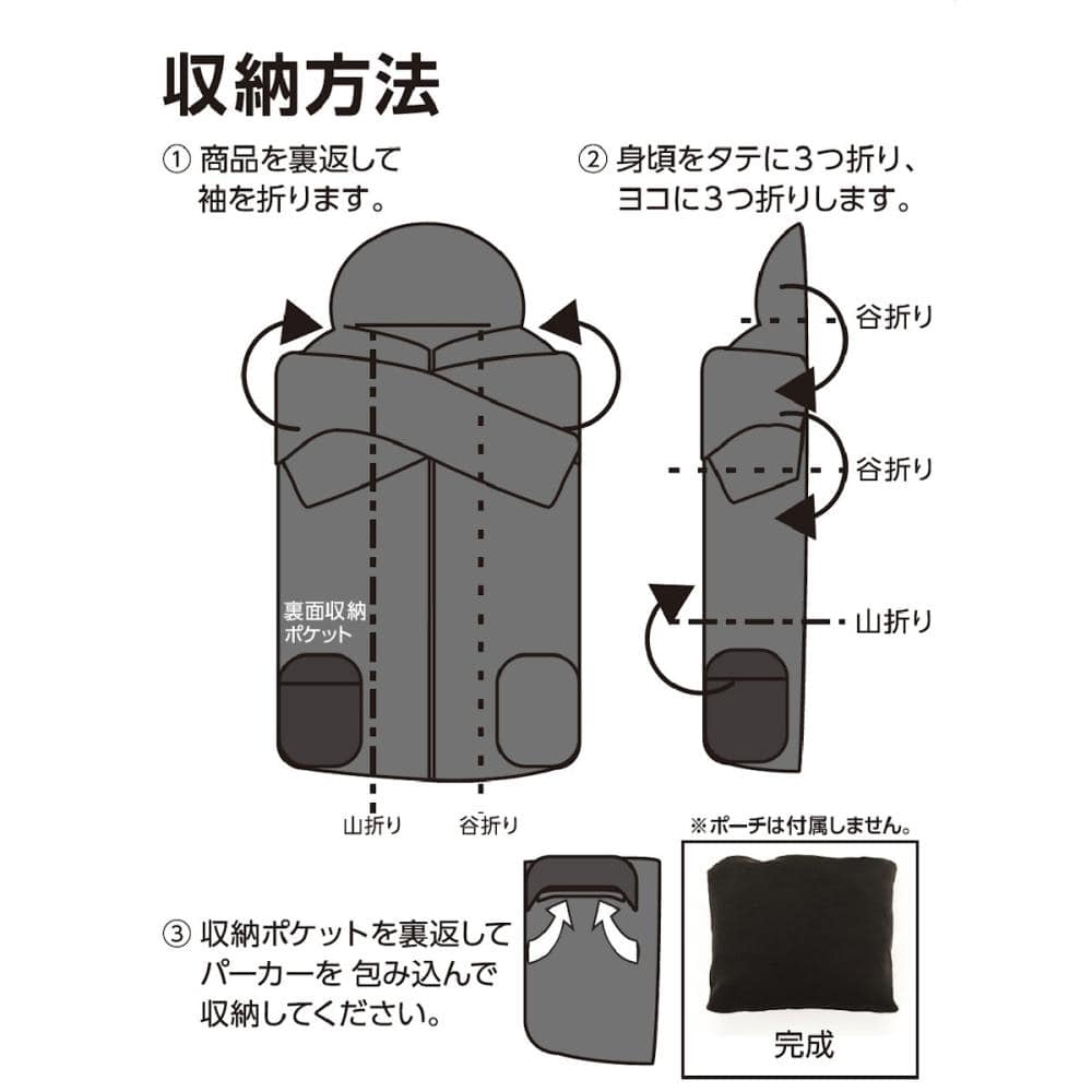 折りたたんでいくとポケット部に収納可能。