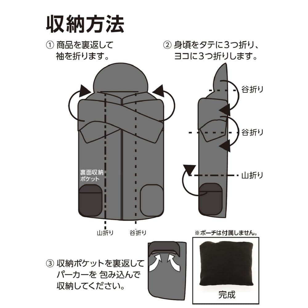 折りたたんでいくとポケット部に収納可能。