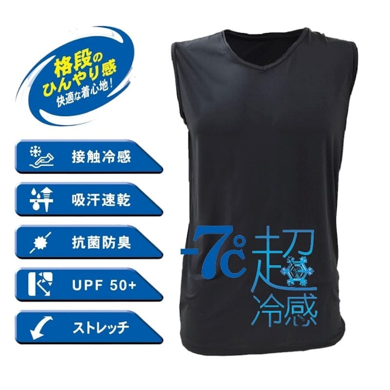 ●冷感との接触 着用時に優れた冷感性を感じらます。 ●吸汗速乾 汗をしっかり吸収、すばやく乾きます。 ●抗菌防臭 汗の臭いの原因となる成分に対して 消臭機能を発揮します。 ●UPF50+ 紫外線からお肌を守ります。 数値が大きいほど紫外線による影響をカットできます。 ●ストレッチ 適度な伸縮性があります。 ●組成:ナイロン90%、ポリウレタン10%