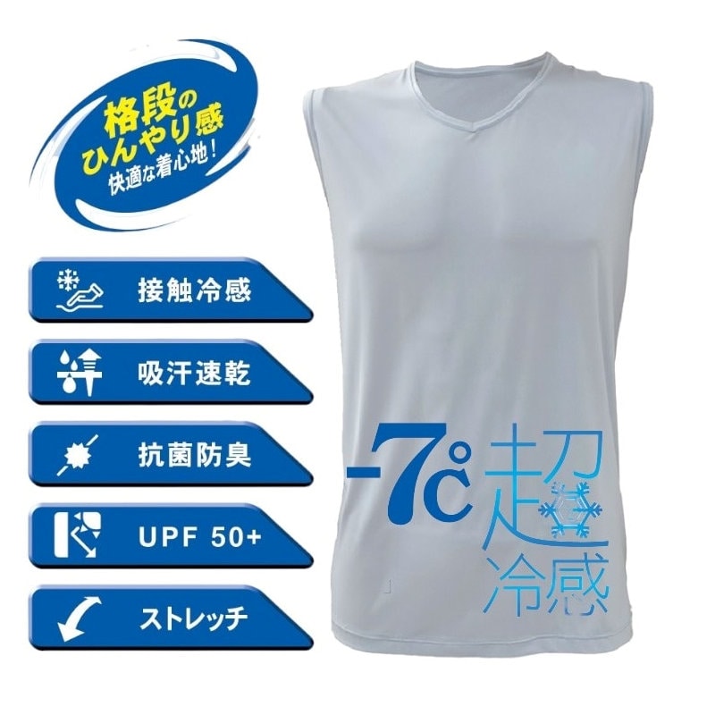 ●冷感との接触 着用時に優れた冷感性を感じらます。 ●吸汗速乾 汗をしっかり吸収、すばやく乾きます。 ●抗菌防臭 汗の臭いの原因となる成分に対して 消臭機能を発揮します。 ●UPF50+ 紫外線からお肌を守ります。 数値が大きいほど紫外線による影響をカットできます。 ●ストレッチ 適度な伸縮性があります。 ●組成:ナイロン90%、ポリウレタン10%