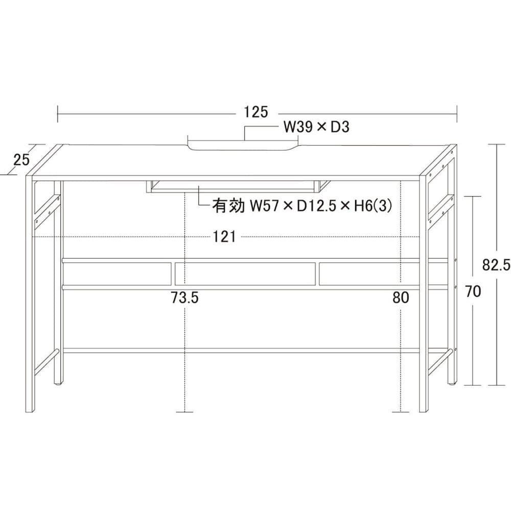【サイズ】 外寸:約幅125×高さ82.5×奥行25cm 【耐荷重】 20kg 【材質】 合成樹脂化粧繊維板、スチール 【原産国】 中国 ※お客様組立商品です。