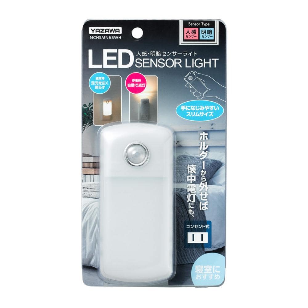 ・感知方法:人感・明暗センサー ・センサー使用可能温度:0℃から30℃ ・連続点灯時間: メインライト 約2時間 トップライト 約1時間 ・光源:電球色LED ・明るさ(相当): メインライト 約50lm トップライト 約10lm ・設計寿命:約30000時間 ・周波数:50/60Hz ・消費電力:0.4W ・定格電圧・100V