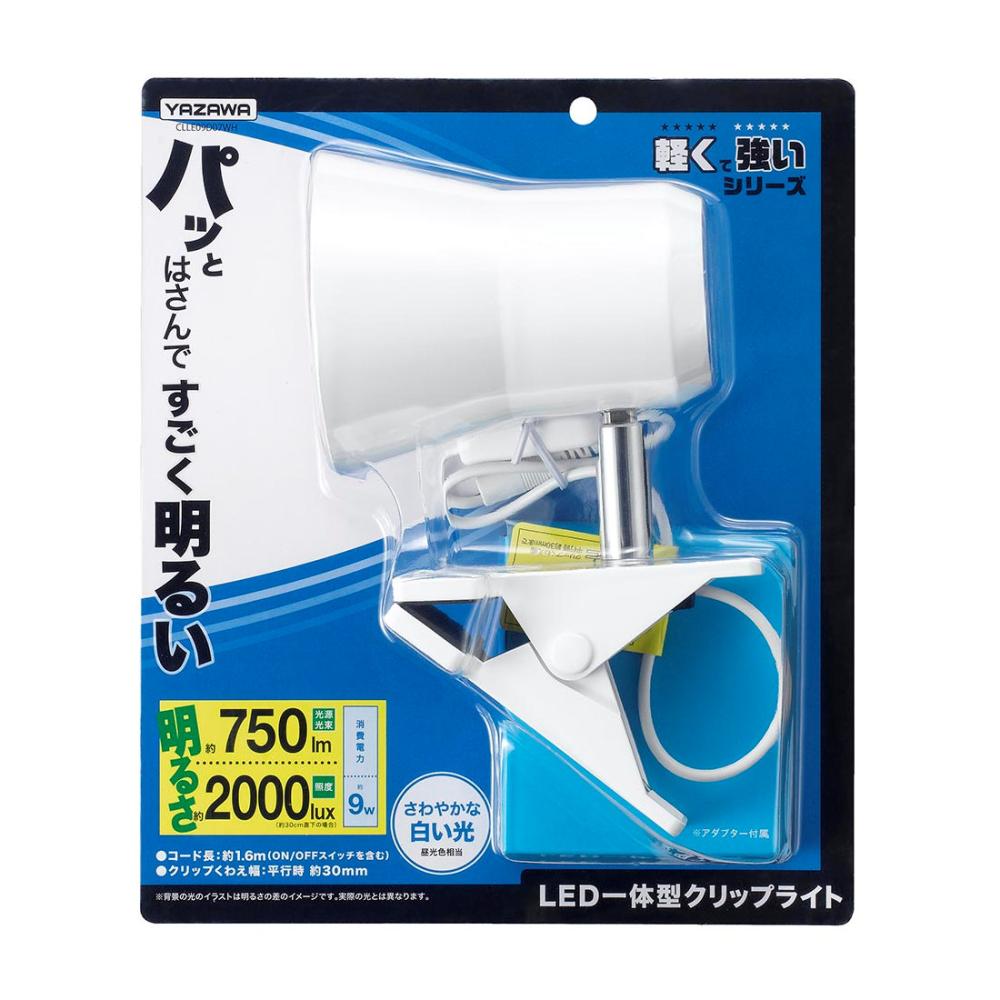 ・材質:ABS樹脂 ・定格消費電力:9W ・定格入力:DC27V ・色温度:約6500K ・光源光束:約750lm ・器具光束:約450lm ・照度:約2000lux ・設計寿命:約40000時間 ・コード長:約1.6m(ON/OFFスイッチを含む) ・クリップくわえ幅:平行時 約30mm ・付属品:ACアダプター