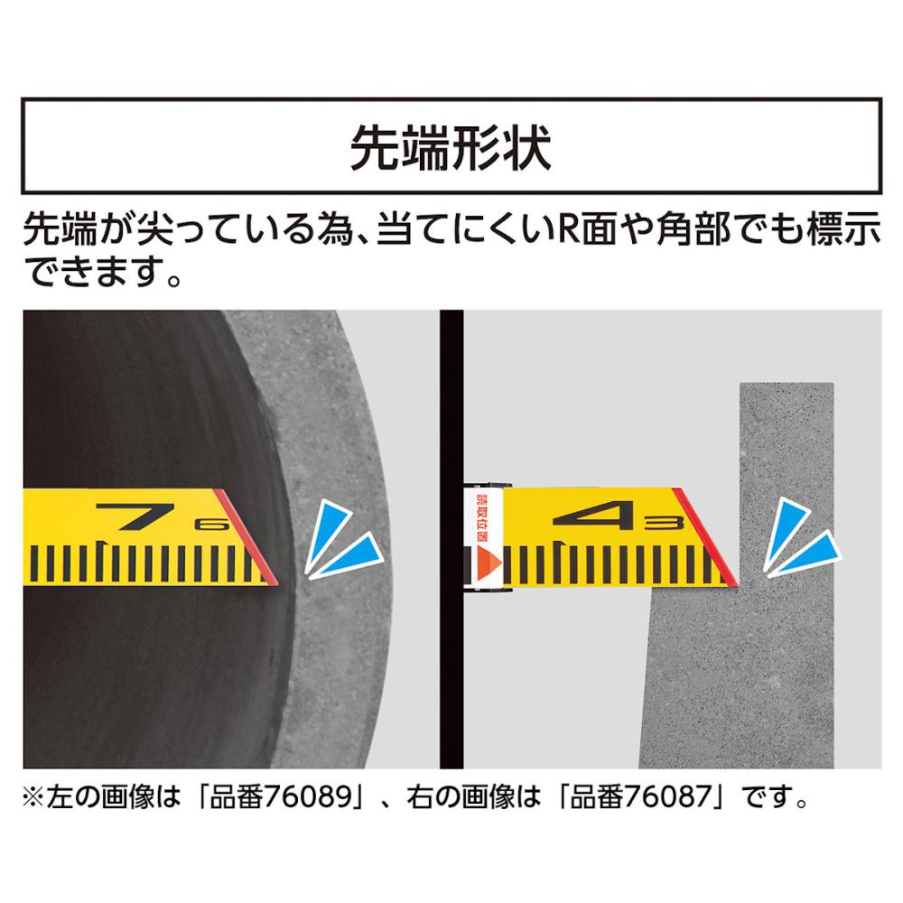 ●表裏両面に内寸測定用目盛が入っている為、伸ばして内寸を示すことができます。 ●先端が尖っている為、当てにくいR面や角部でも標示できます。 ●お手持ちのクロス金具を使うことで、クロス標尺としても使用できます。