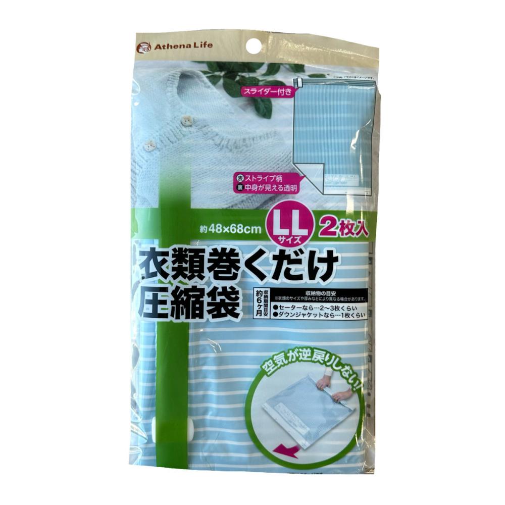 ●手で巻くだけで、簡単に衣類を圧縮することができます。 ●空気が逆戻りしない逆止弁を採用。 ●旅行や出張先でも。かさばる衣類荷物を簡単に圧縮し、カバンのスペースを広げることができます。 ●表面は中身を見えにくくするストライブ柄。裏面は中身を確認できる透明仕様です。 ●ファスナーを閉めやすくするスライダー付きです。 ●LLサイズ(48×68cm)2枚入り。セーターなら2~3枚くらい、ダウンジャケットなら1枚くらい入ります。