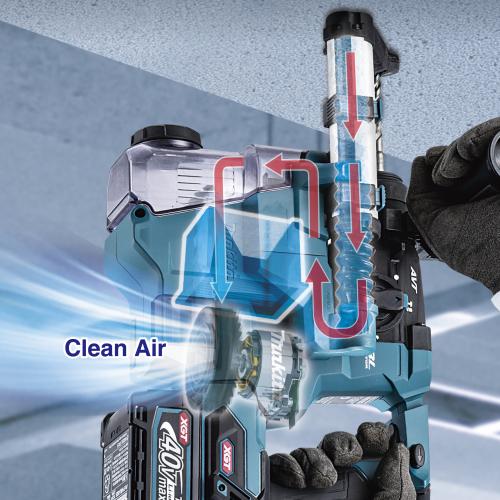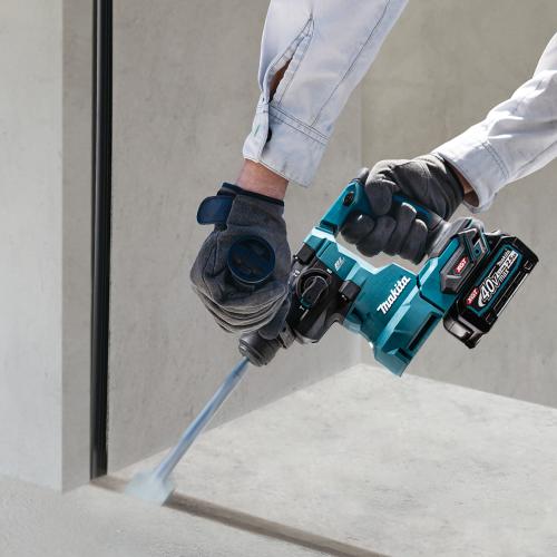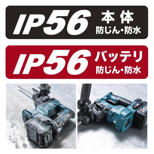 ●バッテリ:40Vmax ●SDSプラスシャンク ●穴あけ能力:コンクリート20mm ●回転数:0~1350回転/分 ●打撃数:0~5000回/分 ●1充電あたりの作業量(BL4025使用時)コンクリート穴あけ(径10.5mm深さ60mm):約75本 ●実用充電約19分/フル充電約28分 ●標準付属品:本体・バッテリ(BL4025)×2・充電器DC40RA・プラスチックケース・サイドグリップ・ストッパポール・集じんシステム