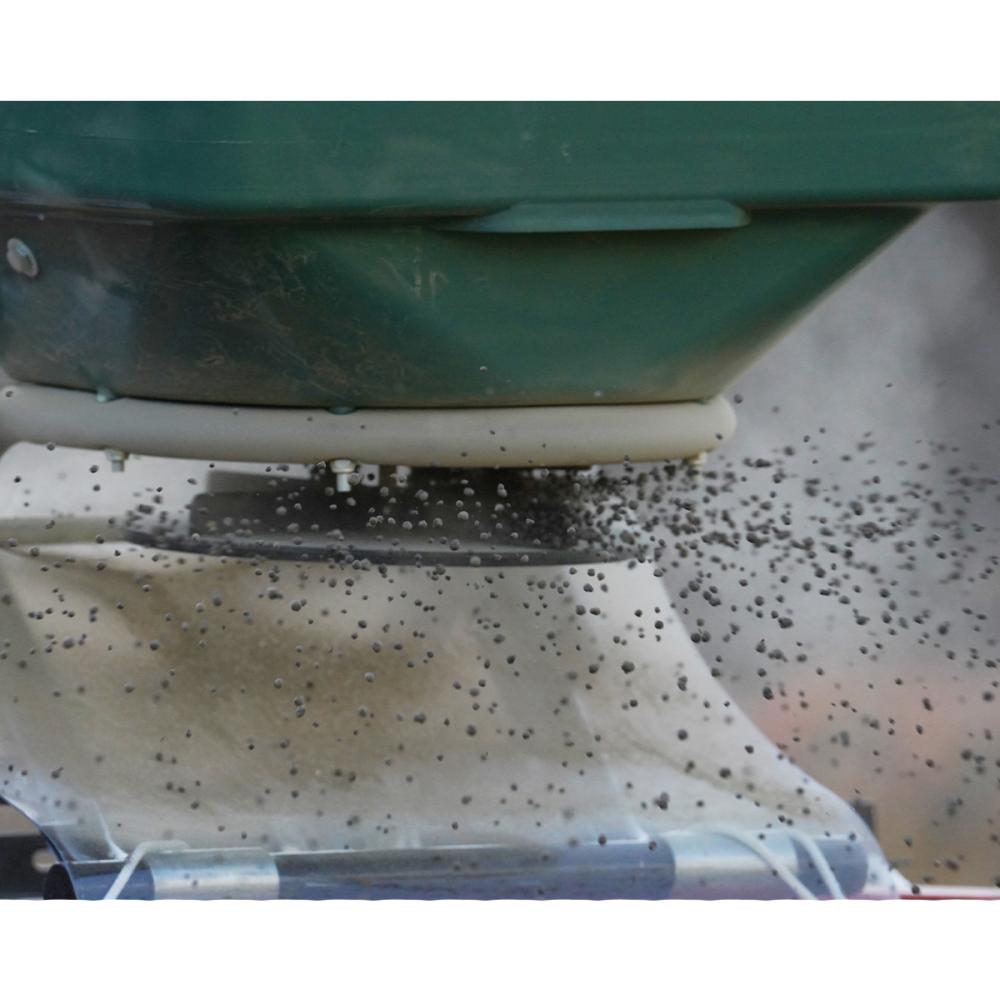 ●電動の回転板の力で散布するため散布範囲は約5メートルを均一に撒けます。(肥料の粒の大きさや重さによります。)