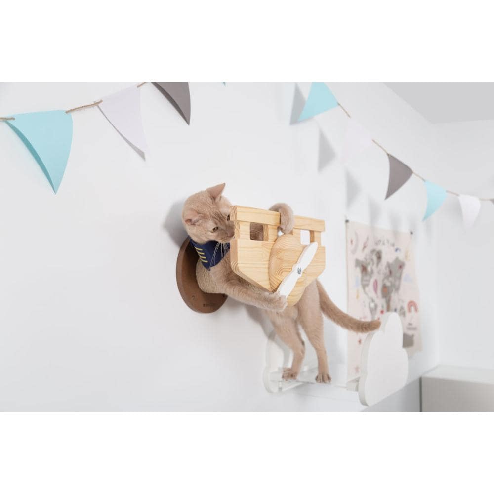 猫が上に立つとまるで飛行機が飛び立つかのような雰囲気に。全猫種・全年齢対応。