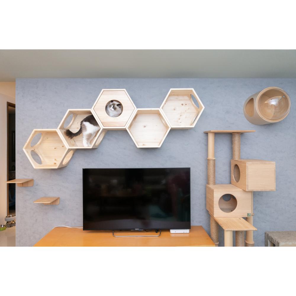 【特徴】六角ハウスに猫の隠れ家を作ります。六角ハウスを複数繋げればキャットウォークを作ることができますし、カバーを取り付けると猫が隠れる場所にもなります。