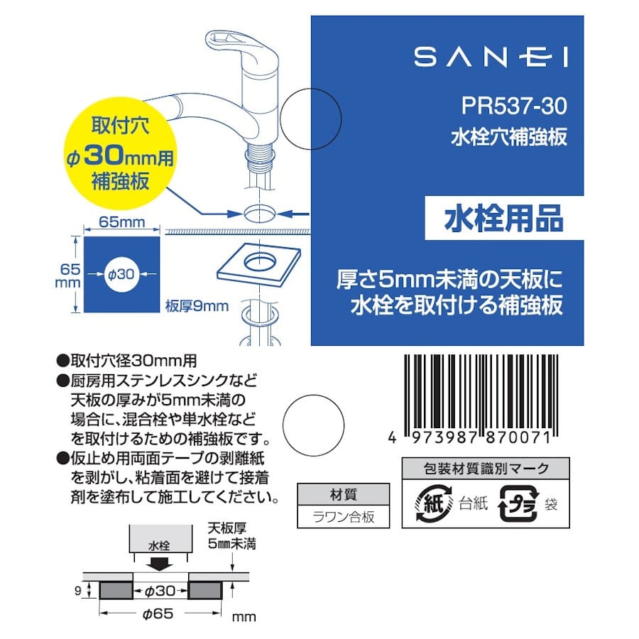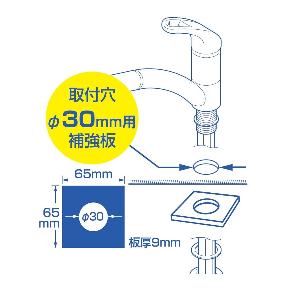 ●厚さ5mm未満の天板に水栓を取付ける補強板