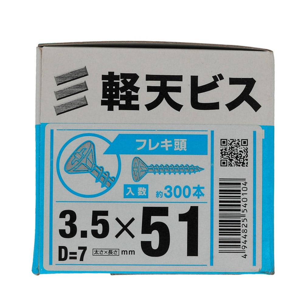 材質は鉄でユニクロめっき フレキ付きのビス 打ち込み速度が速く、うすい鉄板に下穴をあけずに打ち込むことができます。 【入数】約300本 【サイズ】太さ3.5×長さ51mm 頭径D=7
