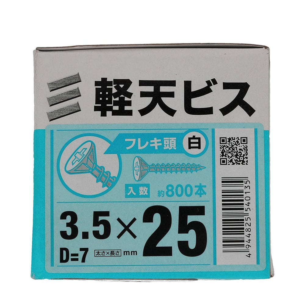 材質は鉄でユニクロめっき フレキ付きのビス 下穴不要で薄鉄板にすばやく打ち込むことができます。 頭部に白色の塗装が施されています。 【入数】約800本 【サイズ】太さ3.5×長さ25mm 頭径D=7