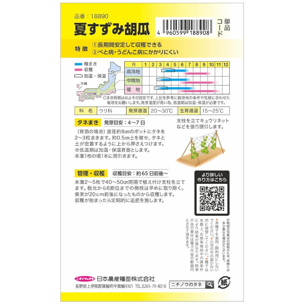 長期間安定して収穫できる。べと病・うどんこ病にかかりにくい。