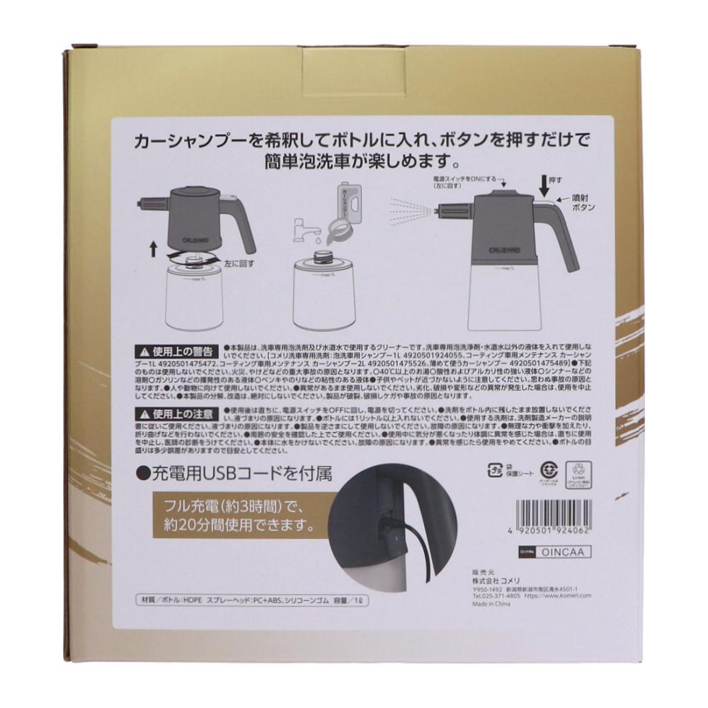 ・本製品は、洗車専用泡洗剤及び水道水で使用するクリーナーです。洗車専用泡洗浄剤、水道水以外の液体を入れて使用しないでください。