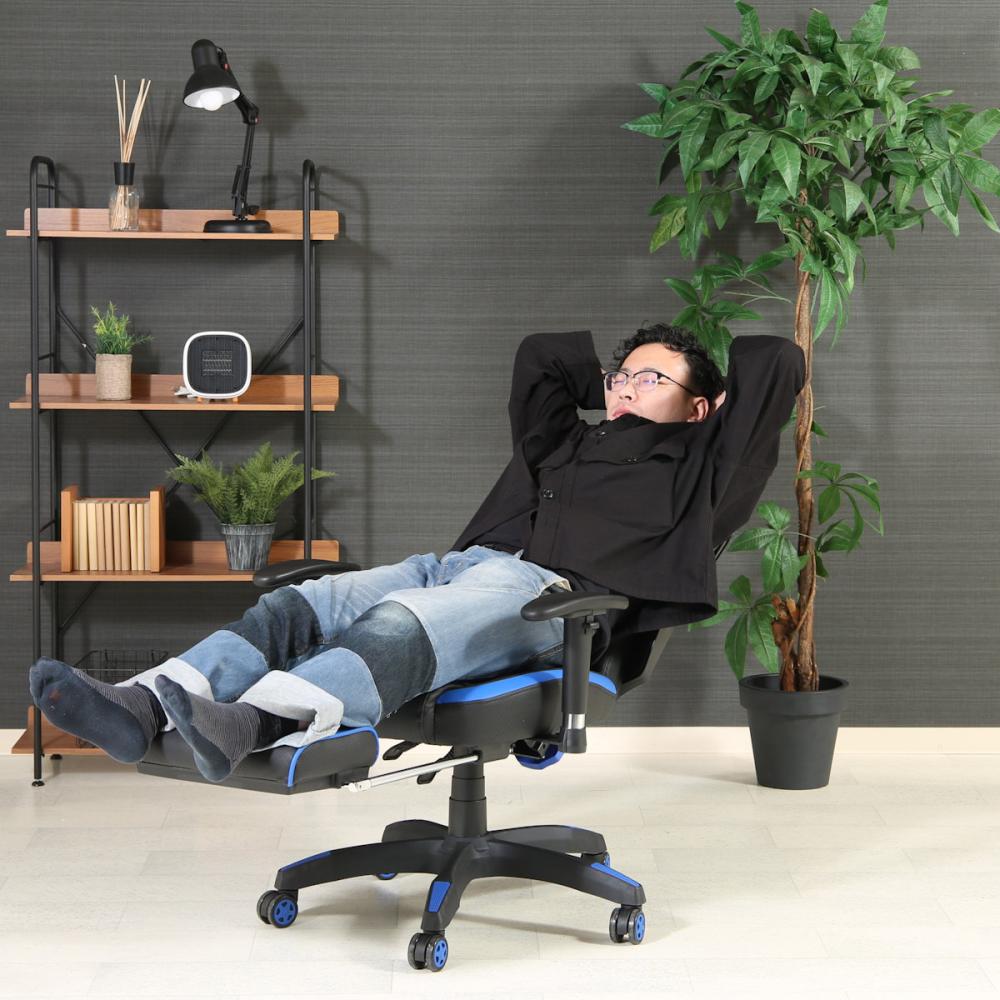 【サイズ】 約幅62×高さ65×奥行80cm 座面高:42~49cm 座面サイズ:53×56cm 【材質】 構造部材:金属(鋼)、合板 表面加工:エポキシ樹脂塗装 張り材:合成皮革(PU)、ポリエステル クッション材:ウレタンフォーム 【機能】 リクライニング角度:90°~150° オットマン付き 【耐荷重】 80kg 【原産国】 中国 ※お客様組立商品です。